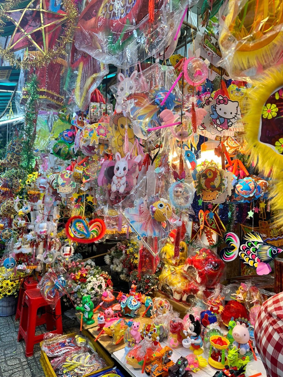 Các gian hàng đã trưng bày hàng trăm loại lồng đèn truyền thống xen lẫn hiện đại như lồng đèn giấy, lồng đèn đan tre được đính đủ loại thú bông khác nhau, lồng đèn nhựa mô phỏng các nhân vật hoạt hình tích hợp đèn và âm thanh. Nhiều loại lồng đèn mới thân thiện với môi trường được các cửa hàng nhập về để bán.