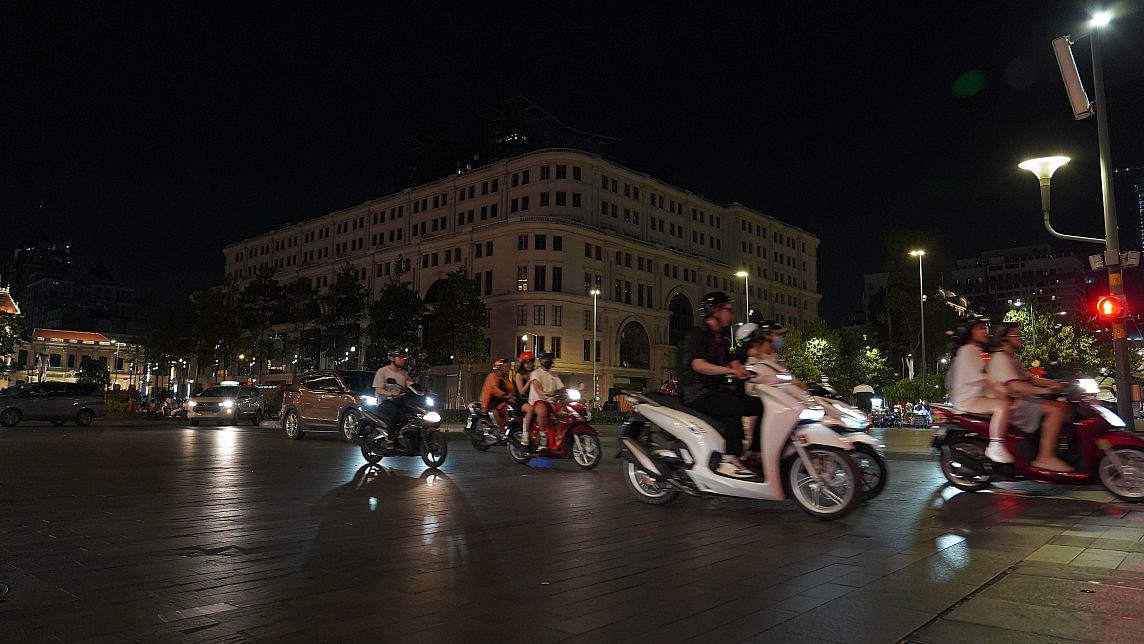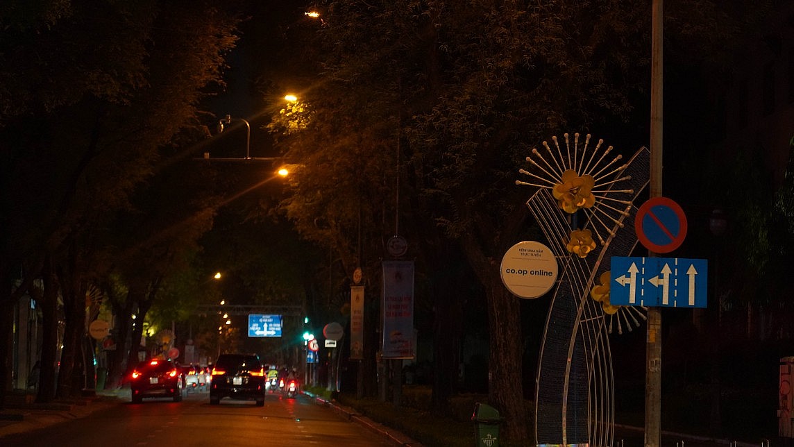 | Đèn trang trí dọc tuyến đường Nam Kỳ Khởi Nghĩa từ quận 3 - quận 1 đã được tắt sau 22 giờ (Ảnh: Thanh Minh) |