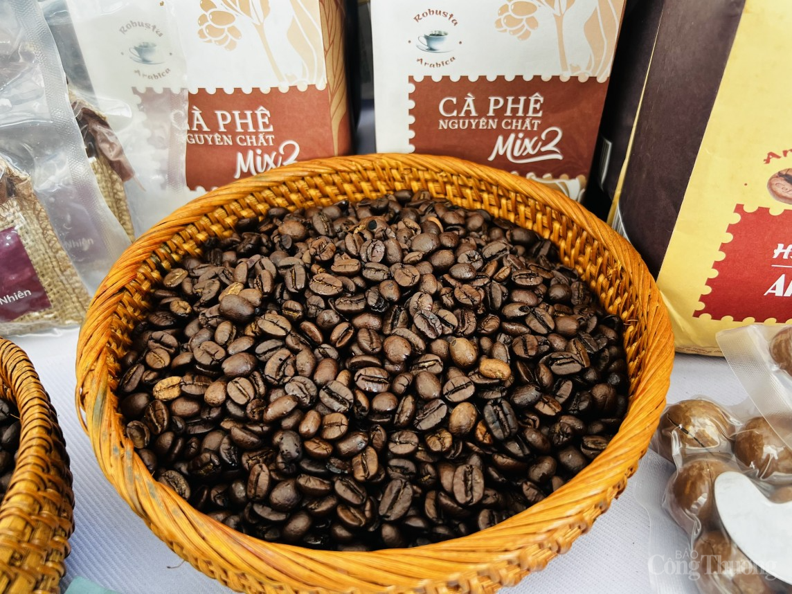 | Các sản phẩm cà phê, trà, macca, mật ong... từ Đắk Lắk. |