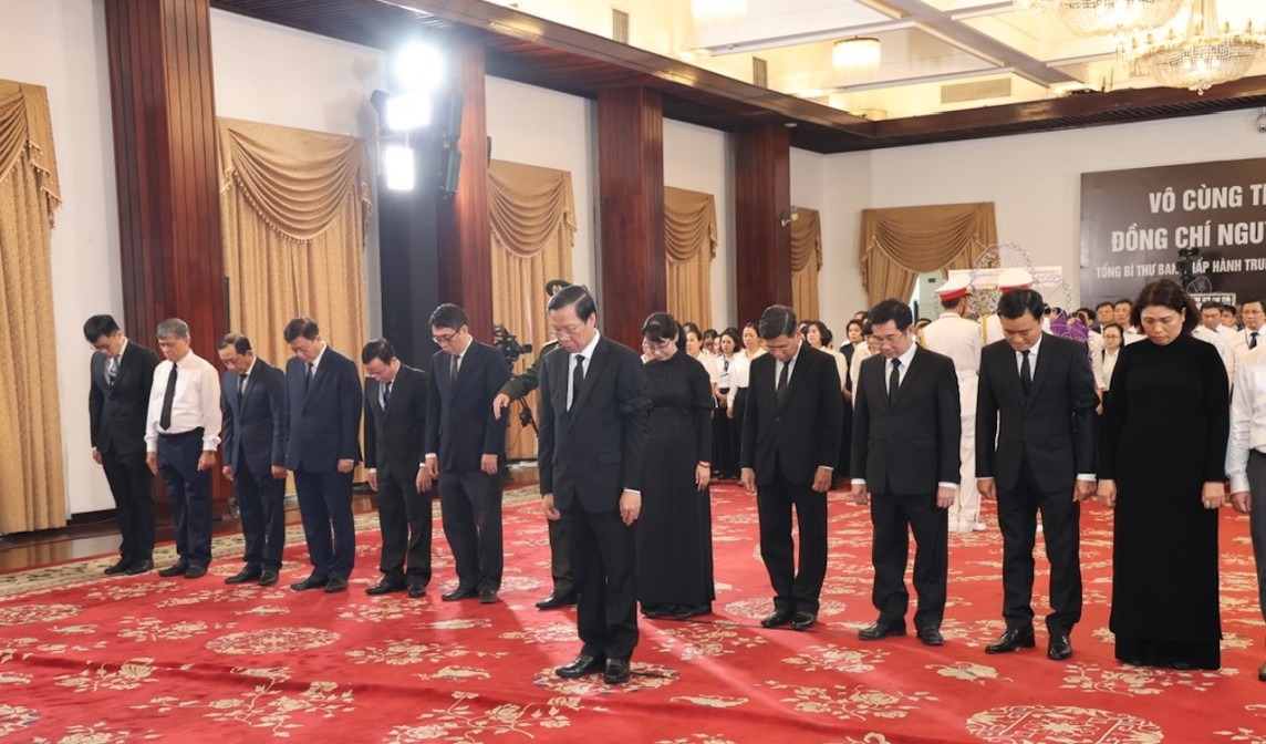 Đoàn đại biểu Thành ủy, HĐND, UBND, Ủy ban Mặt trận Tổ quốc Việt Nam TP. Hồ Chí Minh do đồng chí Nguyễn Văn Nên, Ủy viên Bộ Chính trị, Bí thư Thành ủy TP. Hồ Chí Minh làm Trưởng đoàn vào viếng Tổng Bí thư Nguyễn Phú Trọng.