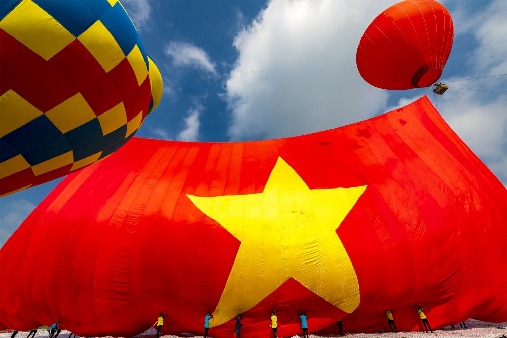| 2 kinh khí cầu kéo quốc kỳ "khổng lồ" lên nền trời snags ngày 2/9 tại TP. Hồ Chí Minh |