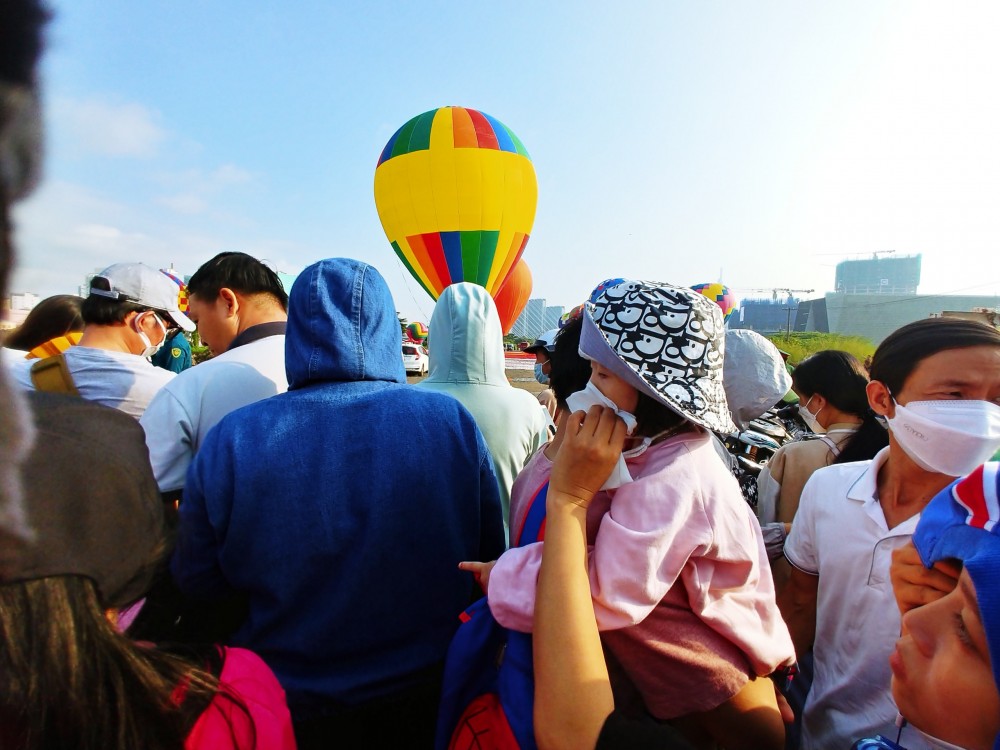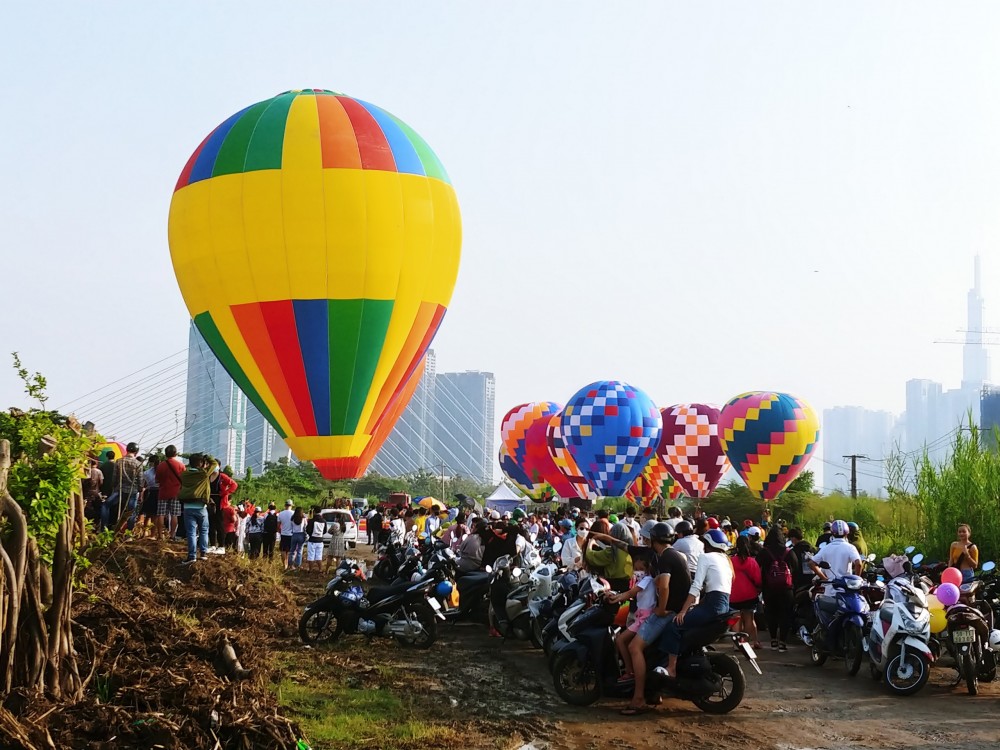 | Hàng nghìn người dân tập trung tại khu vực hai bên bờ sông Sài Gòn để xem kinh khí cầu |
