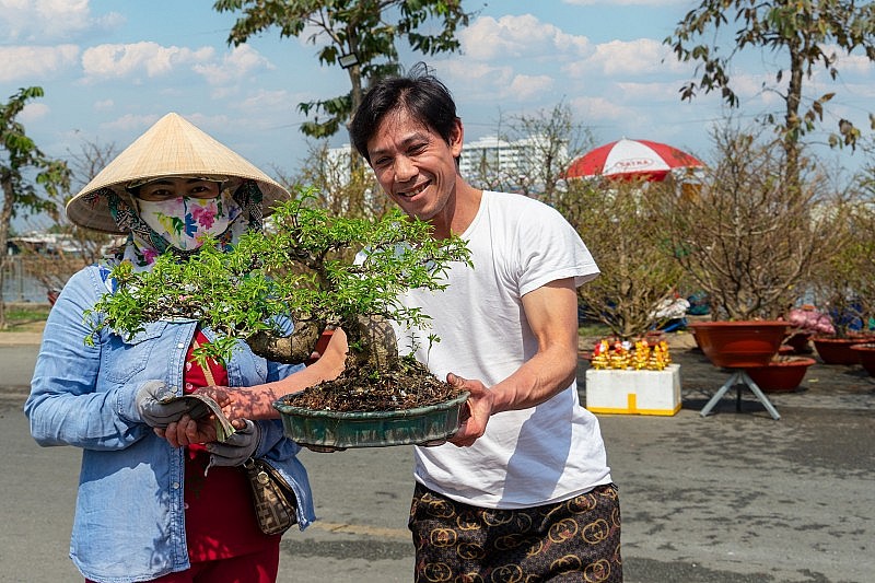 Điều đặc biệt ở chợ hoa Xuân Bình Điền chính là chỉ cần vài chục ngàn đồng, khách hàng có thể sở hữu một chậu hoa về chơi Tết. Thương nhân, nhà vườn bán hoa tết ở đây cũng không nói thách, không nâng giá…