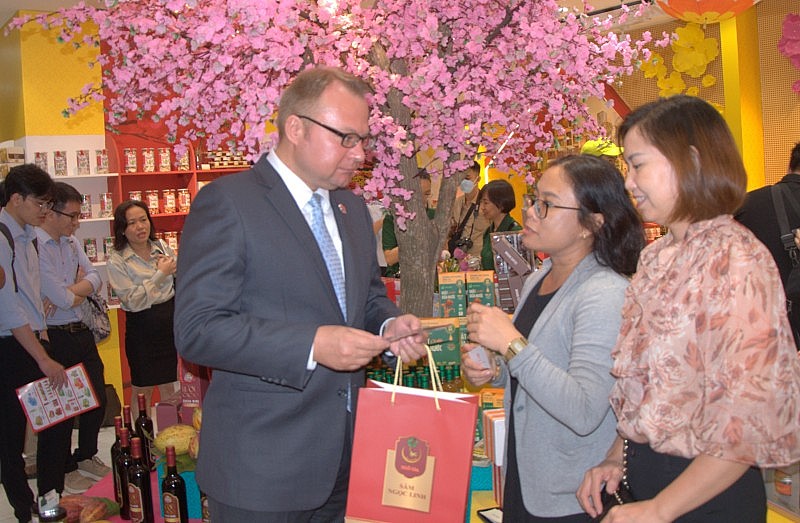 | Doanh nghiệp, giới thiệu sản phẩm đặc sản, sản phẩm OCOP với người tiêu dùng và đơn vị xuất khẩu tại Tuần lễ triển lãm |
