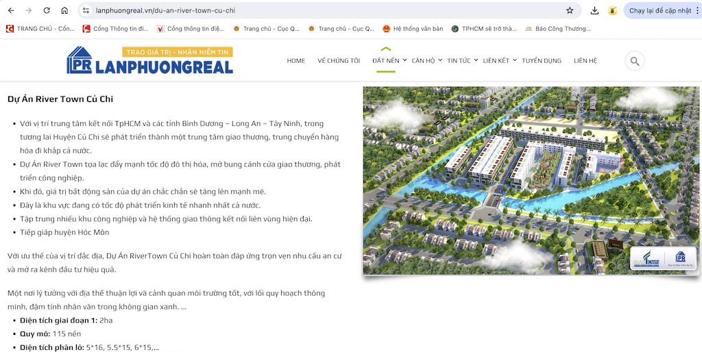 Công ty địa ốc Lan Phương Real giới thiệu “dự án” với tên gọi “River Town Củ Chi” trên Wibsite