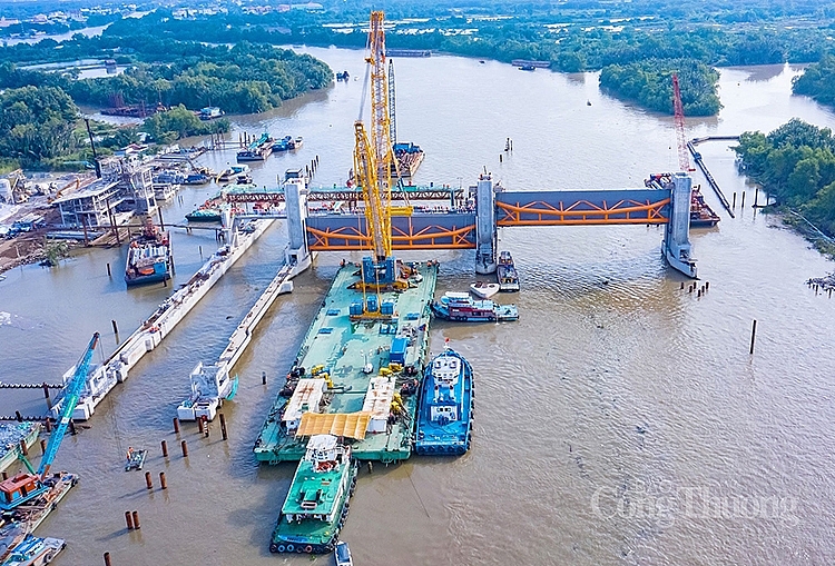 Cửa van cống ngăn triều Cây Khô (Dự án ngăn triều), có khẩu độ hơn 41 m, cao 8,5 m, tổng trọng lượng 460 tấn, được xem là cửa van ngăn triều lớn nhất Việt Nam hiện nay |