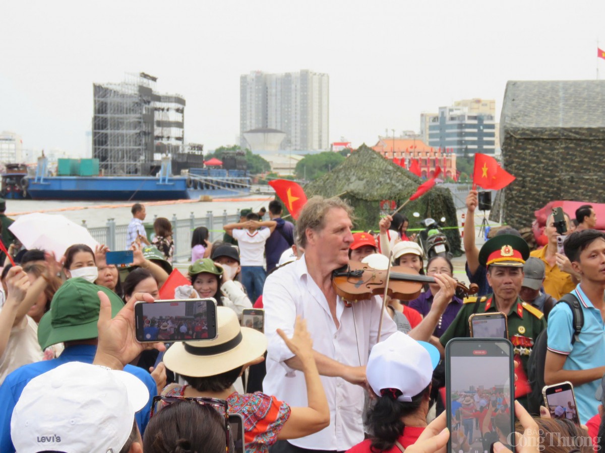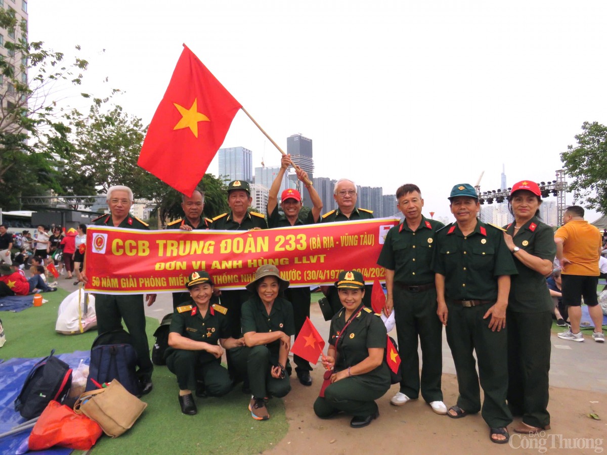 Ông Nguyễn Văn Quý, 74 tuổi, ngồi bên vỉa hè Bến Bạch Đằng, xúc động chia sẻ: "Tôi từng là bộ đội. Mỗi lần đến dịp này, tôi lại thấy sống lại những ngày gian khổ mà hào hùng. Được ngồi đây đợi, cùng con cháu mình, tôi thấy hạnh phúc lắm. Không chờ sao được, ngày này là ngày của cả dân tộc mà".