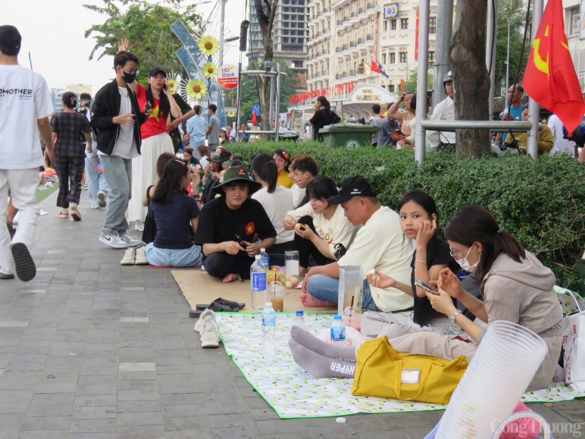 Từ chiều 29/4, những địa điểm có thể quan sát lễ diễu binh, diễu hành Ngày Giải Phóng Miền Nam - 30/4 như Bến Bạch Đằng, chân cầu Khánh Hội… đã đông kín người. Từng dòng người đổ về, mang theo chiếu, ghế xếp, nước uống, quạt tay. Dưới cái nắng gắt, giữa cái oi nồng đặc trưng của TP. Hồ Chí Minh cuối tháng Tư, họ vẫn kiên nhẫn ngồi chờ.
