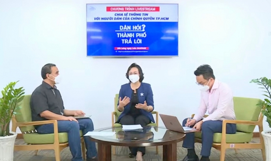 Bà Phan Thị Thắng - Phó Chủ tịch UBND TP. Hồ Chí Minh trực tiếp đối thoại với người dân và doanh nghiệp trong Chương trình livestream “Dân hỏi - Thành phố trả lời" tối ngày 8/10 |
