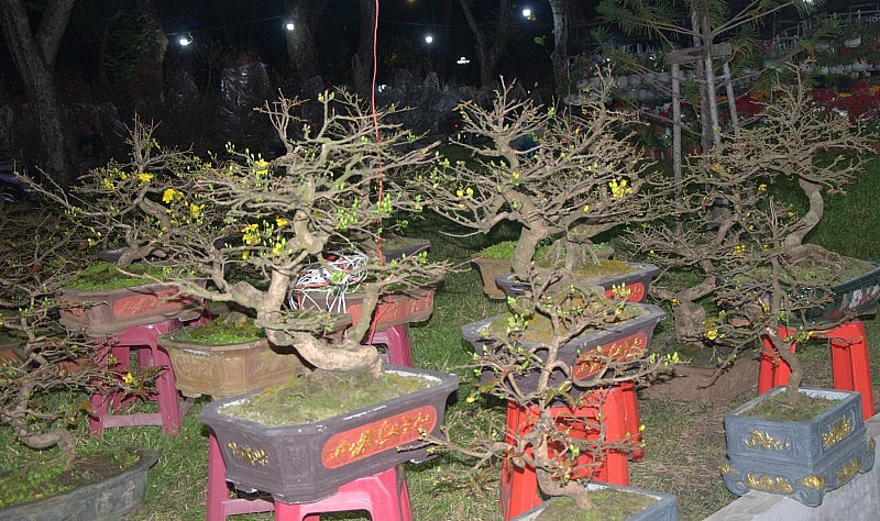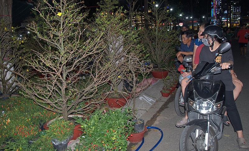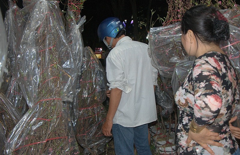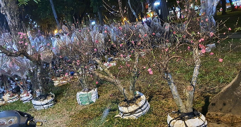 Hàng trăm gốc đào miền Bắc được đưa vào TP. Hồ Chí Minh bày bán tại Công Viên Lê Văn Tám (quận 1)