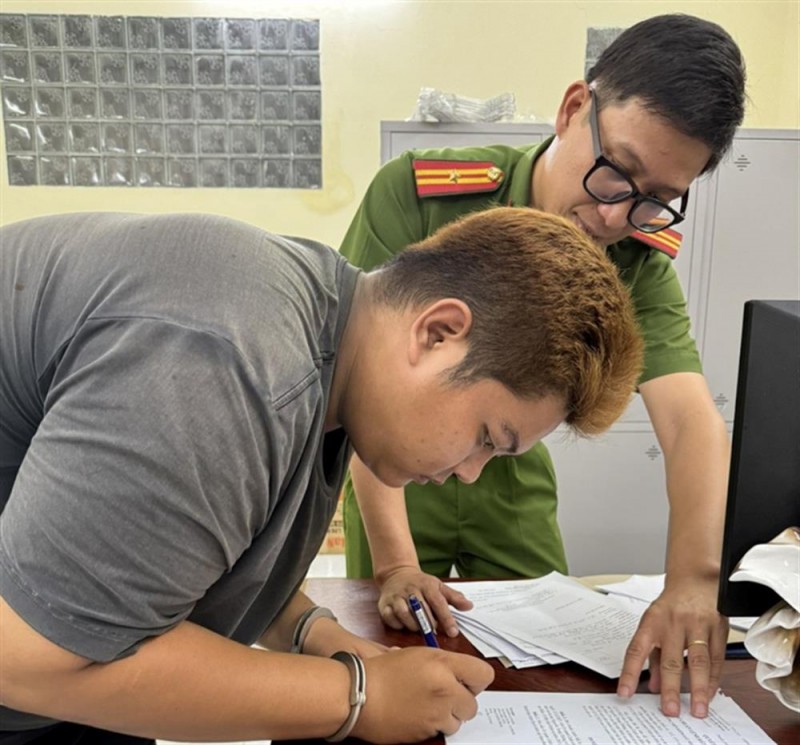| Đối tượng Nguyễn Trung Thông tại cơ quan công an. |