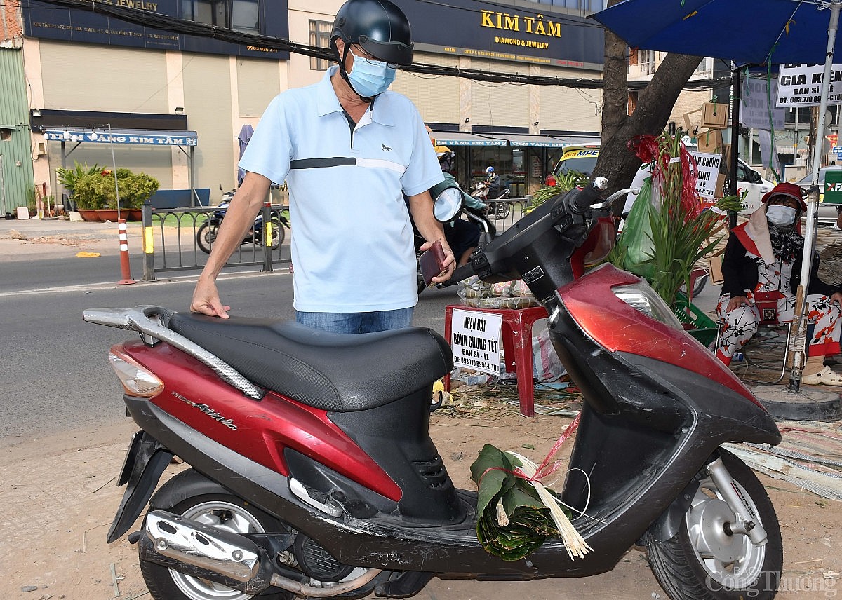 Thay vì mua bánh gói sẵn, nhiều người dân thành phố vẫn thích tự gói bánh chưng, bánh tét cho vừa khẩu vị của gia đình và thể hiện sự sum họp, ấm áp trong dịp năm mới. Ảnh: Thanh Minh. |