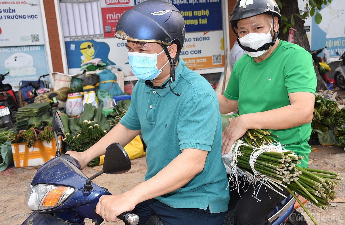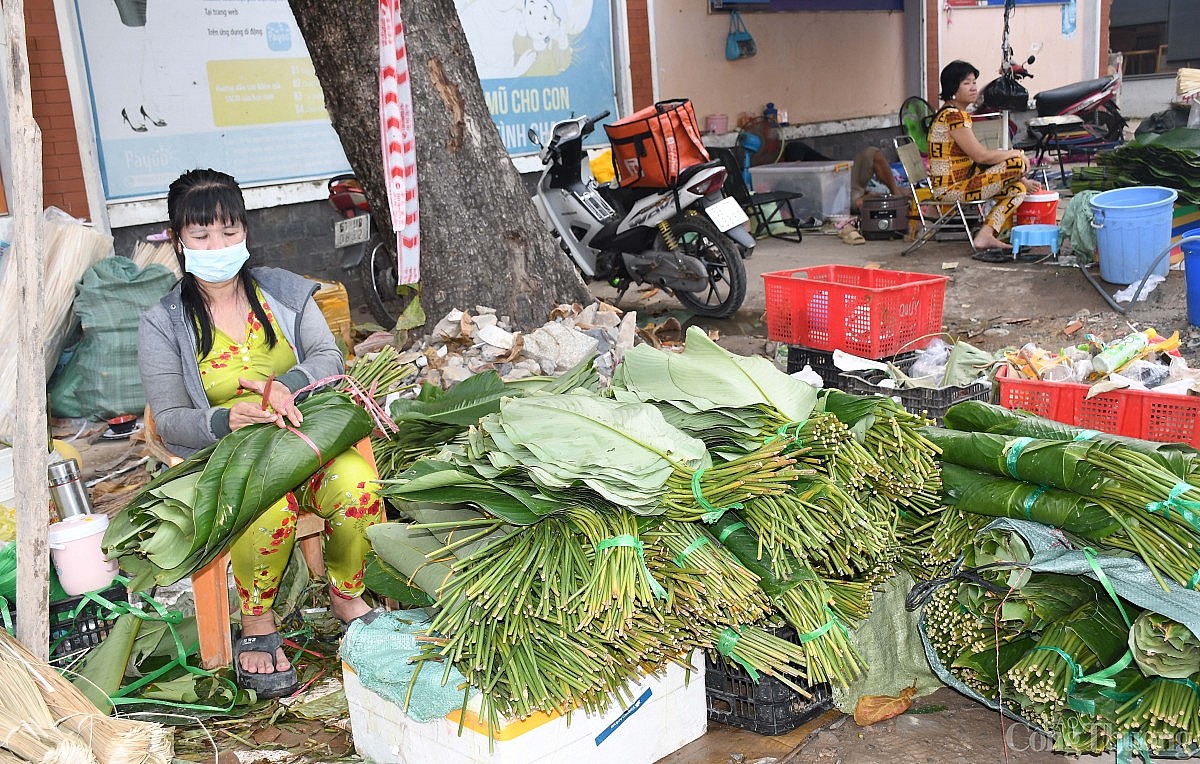 | Chợ lá dong nằm trên đường Cách Mạng Tháng Tám đoạn giao với đường Phạm Văn Hai, phường 7, quận Tân Bình hay còn gọi là ngã ba Ông Tạ, được các tiểu thương bán sỉ cho các chợ, các cơ sở làm bánh chưng phục vụ thị trường Tết và phục vụ nhu cầu gói bánh của người dân thành phố. Ảnh: Thanh Minh. |