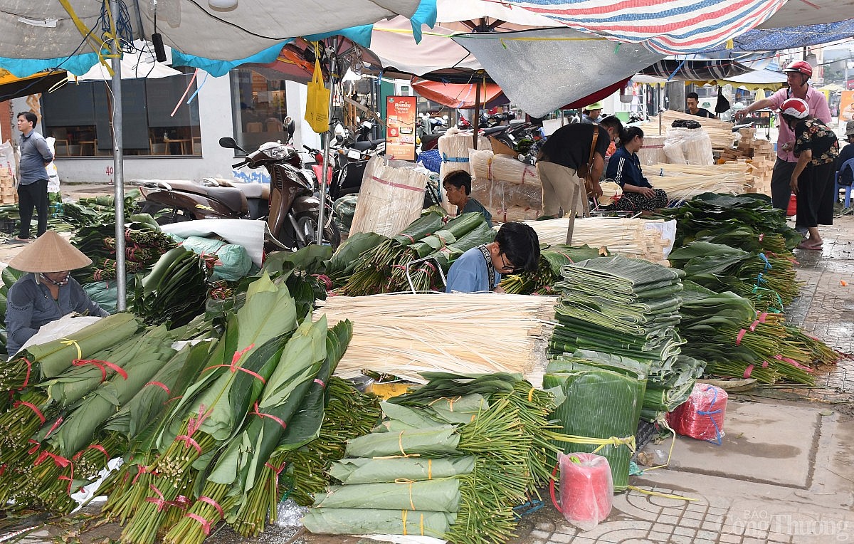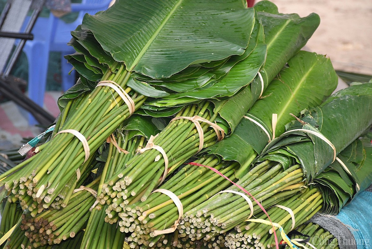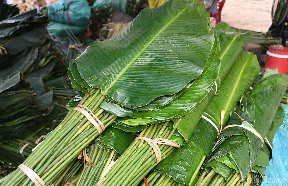 | Năm nay dù đã là ngày 23 Tết nhưng vẫn chưa có nhiều người mua lá dong về gói bánh. Ảnh: Thanh Minh. |