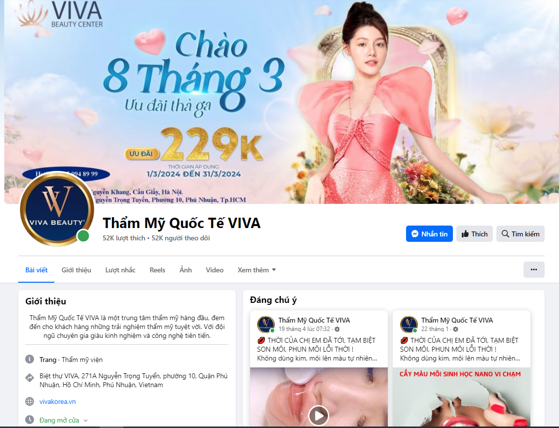 | Thẩm mỹ Quốc tế Viva Phú Nhuận (271/2 Nguyễn Trọng Tuyển, phường 10, quận Phú Nhuận) xử phạt, đình chỉ hoạt động 18 tháng. - (Ảnh mạng xã hội Thẩm mỹ Quốc tế Viva). |