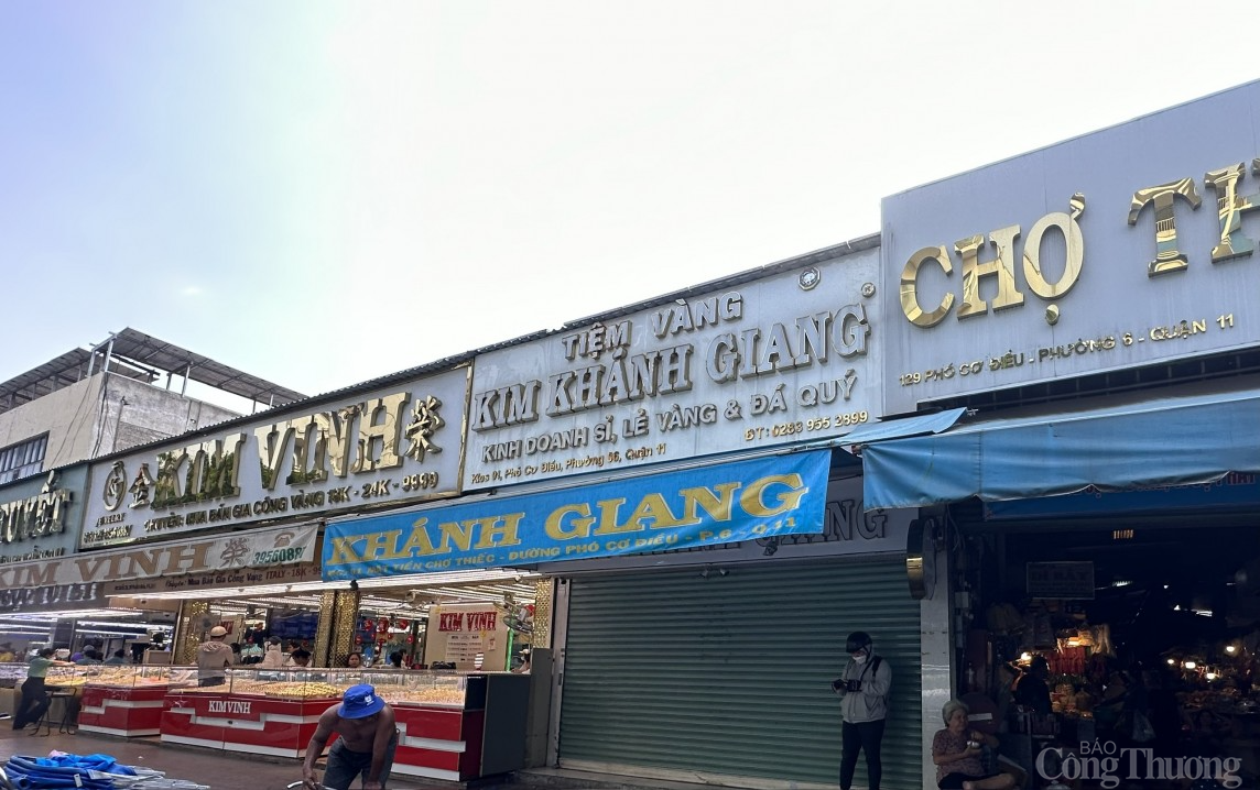 Tuy nhiên, thời điểm ghi nhận có vài cửa hàng bên trong khu vực chợ đang đóng cửa như tiệm vàng Kim Khánh Giang… Xung quanh chợ, tiệm vàng SJC Phú Thọ (158 Phó Cơ Điều, phường 6, quận 11) cũng lâm vào tình trạng tương tự.