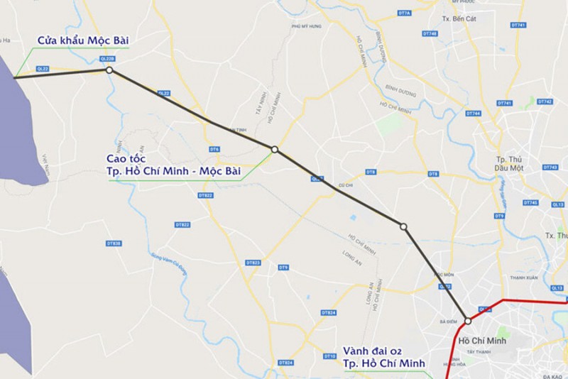 | Sơ đồ dự án cao tốc TP. Hồ Chí Minh - Mộc Bài (tỉnh Tây Ninh) |