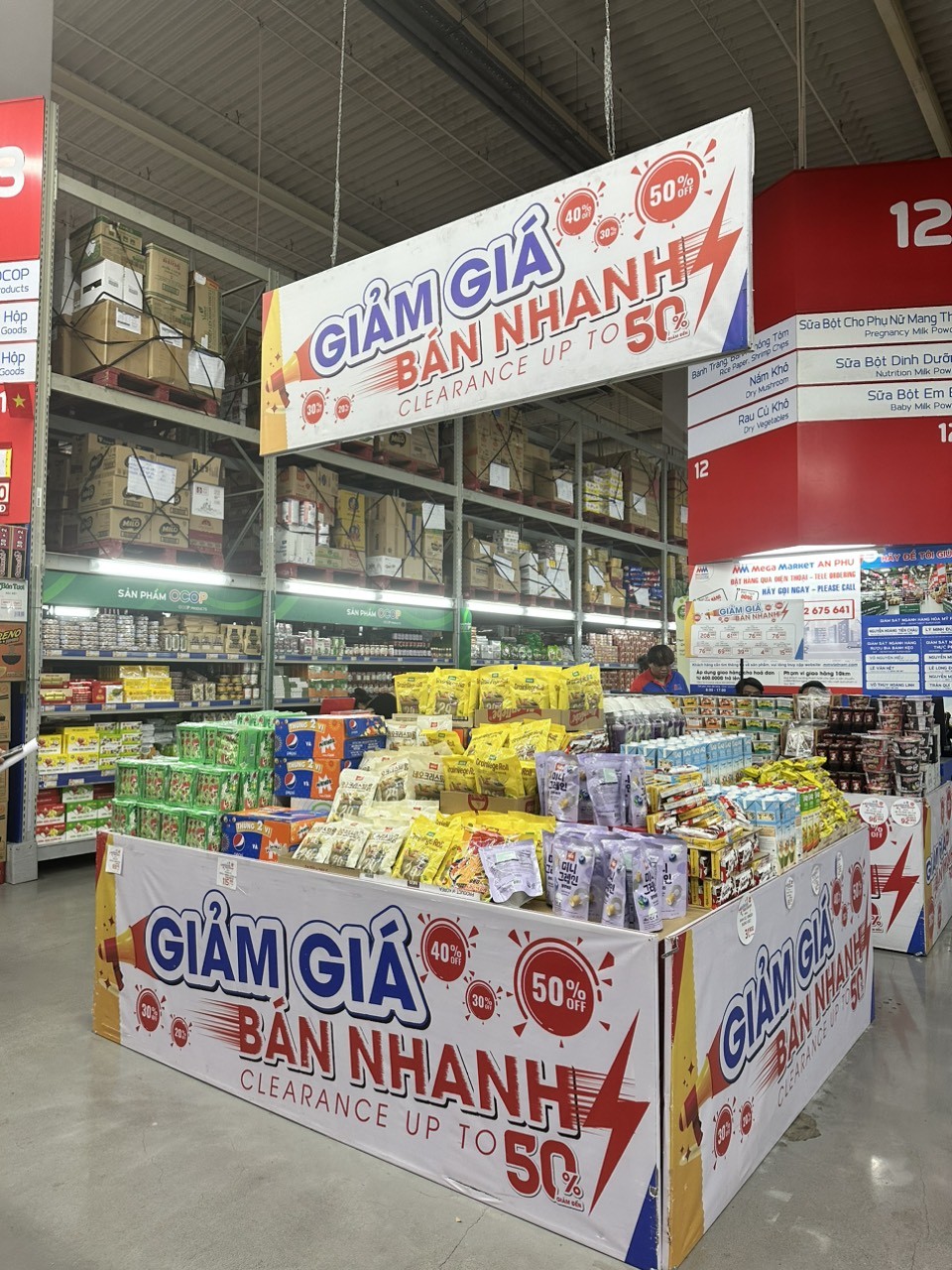 Năm nay, các siêu thị lớn như Co.opmart, VinMart, Mega Market,... tiếp tục tung ra những chương trình khuyến mãi hấp dẫn với mức giảm giá lên đến 50% trên nhiều mặt hàng. Các sản phẩm được giảm giá không chỉ giới hạn trong nhóm thực phẩm và đồ gia dụng mà còn mở rộng sang các lĩnh vực thời trang, mỹ phẩm, đáp ứng nhu cầu mua sắm đa dạng của người tiêu dùng. Bên cạnh việc giảm giá trực tiếp, các chương trình tặng quà, mua 1 tặng 1, hay tích điểm đổi quà cũng được triển khai mạnh mẽ, tạo nên sức hút lớn đối với khách hàng.