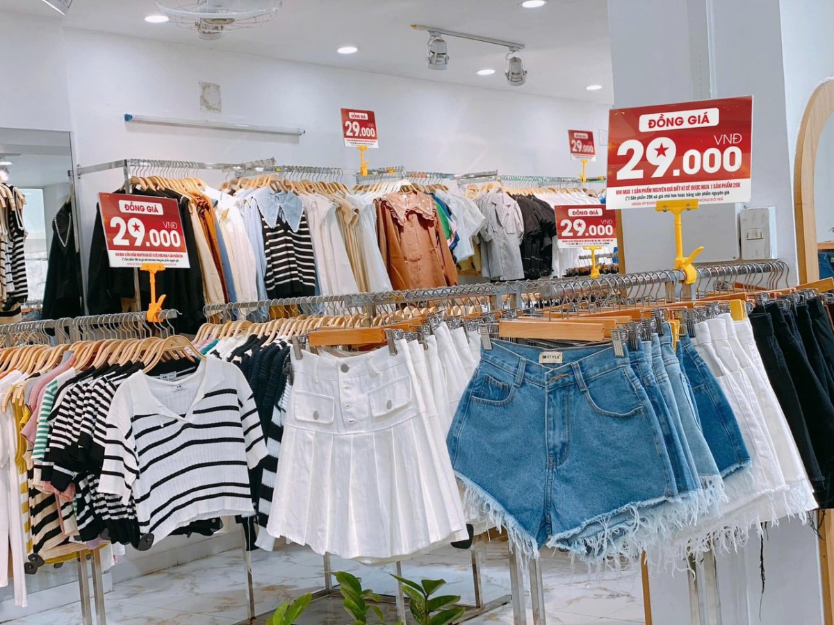 | Quần áo thời trang sale đồng giá tại cửa hàng Thời trang Hana tại Ngyễn Thị Thập, quận 7. Ảnh: CTV |
