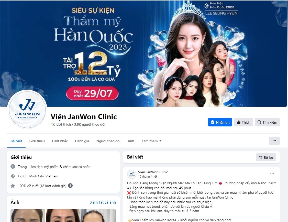 | Một quảng cáo trên mạng xã hội của Hộ kinh doanh Janwon Korea (Ảnh màn hình). |