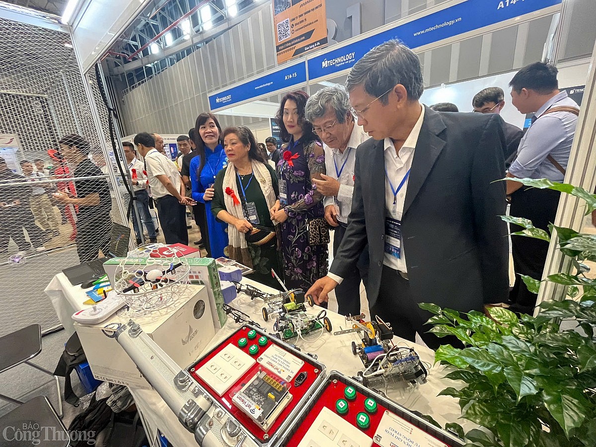 Theo ghi nhận của phóng viên Báo Công Thương, với quy mô khoảng 150 gian hàng, triển lãm không chỉ tập trung vào các công nghệ vi mạch tiên tiến mà còn mở rộng sang các lĩnh vực liên quan như quang điện tử, robot, nhà máy thông minh, ứng dụng trí tuệ nhân tạo (AI) trong sản xuất.