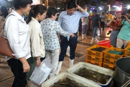 | Đoàn công tác khảo sát thực tế tại chợ đầu mối Hóc Môn (Ảnh: Đinh Phương) |