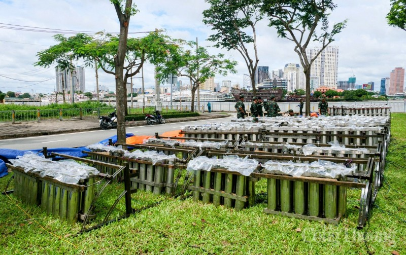 Chiều 2/9, tại công viên hầm vượt sông Sài Gòn, 1.500 quả pháo tầm cao cùng 30 giàn pháo hoa tầm thấp và 10 giàn pháo hoa hỏa thuật được bố trí để dựng trận địa pháo hoa.