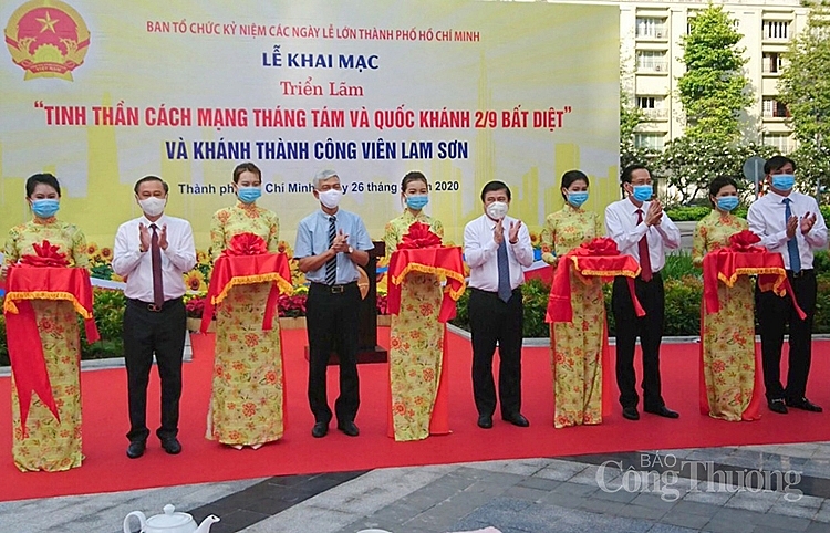 Lãnh đạo TP. Hồ Chí Minh và các đại biểu cắt băng khai mạc Triển lãm ảnh Kỷ niệm 75 năm Ngày Cách mạng Tháng Tám và và Quốc khánh 2/9 |