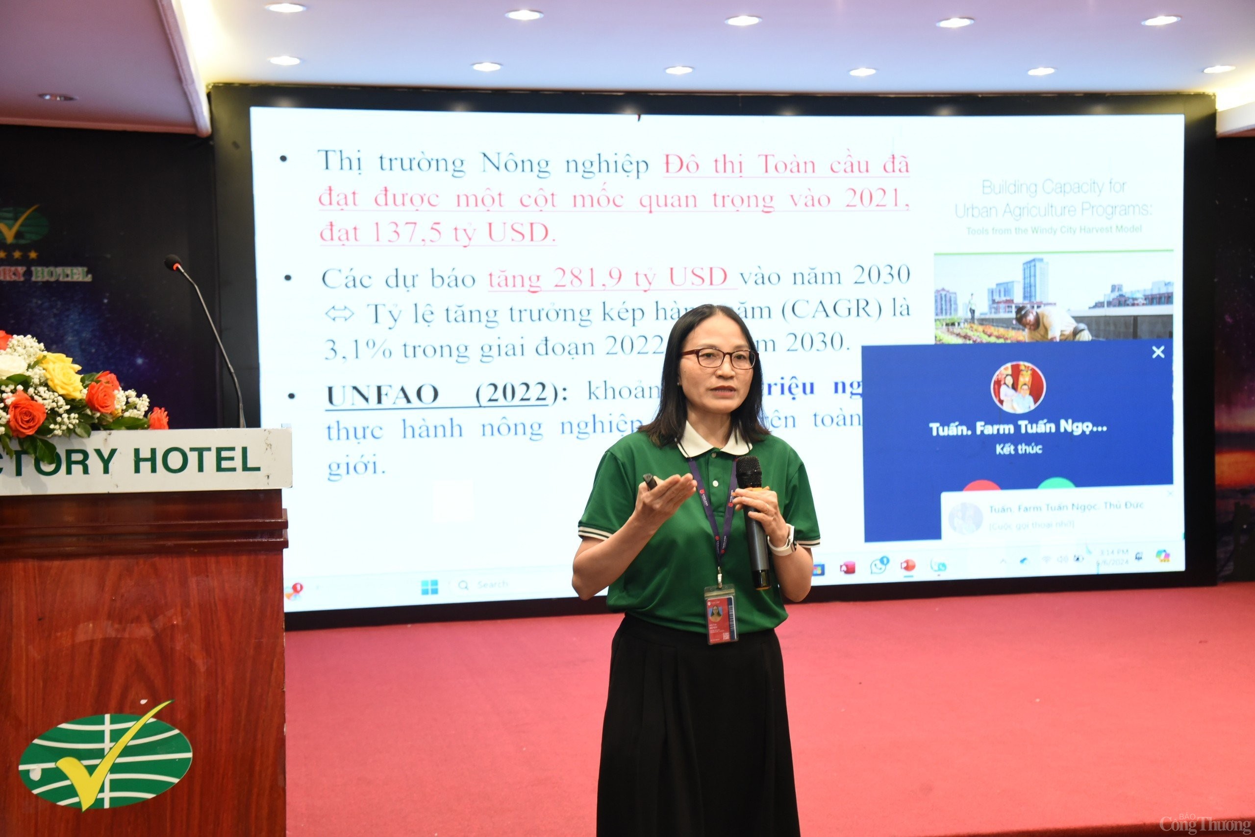 Chiều ngày 6/6/2024, tại hội thảo: “Nông nghiệp đô thị - lợi ích kép cho người dân đô thị” do báo Kinh tế - Đô thị tổ chức, Tiến Sĩ Vũ Thị Quyền - Trưởng ngành Công nghệ Sinh học Khoa Công nghệ ứng dụng, Trường Đại học Văn Lang đã chia sẻ về việc ứng dụng công nghệ cao để phát triển vườn đô thị.