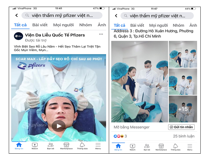 | Một số quảng cáo của đơn vị này trên mạng xã hội. |
