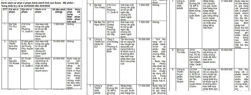| Danh sách các cá nhân, tổ chức bị Sở Y tế TP. Hồ Chí Minh xử phạt |
