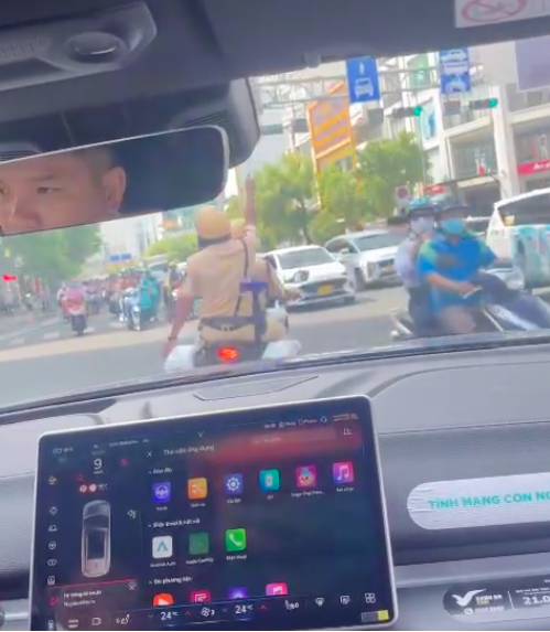 | Cảnh sát giao thông TP. Hồ Chí Minh mở đường cho xe ô tô đưa trẻ sơ sinh đến bệnh viện cấp cứu kịp thời - (Ảnh: C.T) |