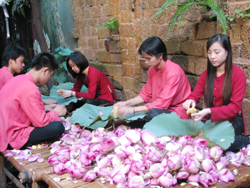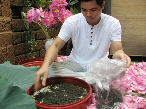 Nghệ nhân Hoàng Anh Sướng cho hay: Việt Nam có nhiều loại sen, nhưng không loại sen nào có vị thơm đặc trưng như sen hồ Tây và trà ủ bằng sen hồ Tây là loại trà sen hảo hạng, không vùng nào sánh được.