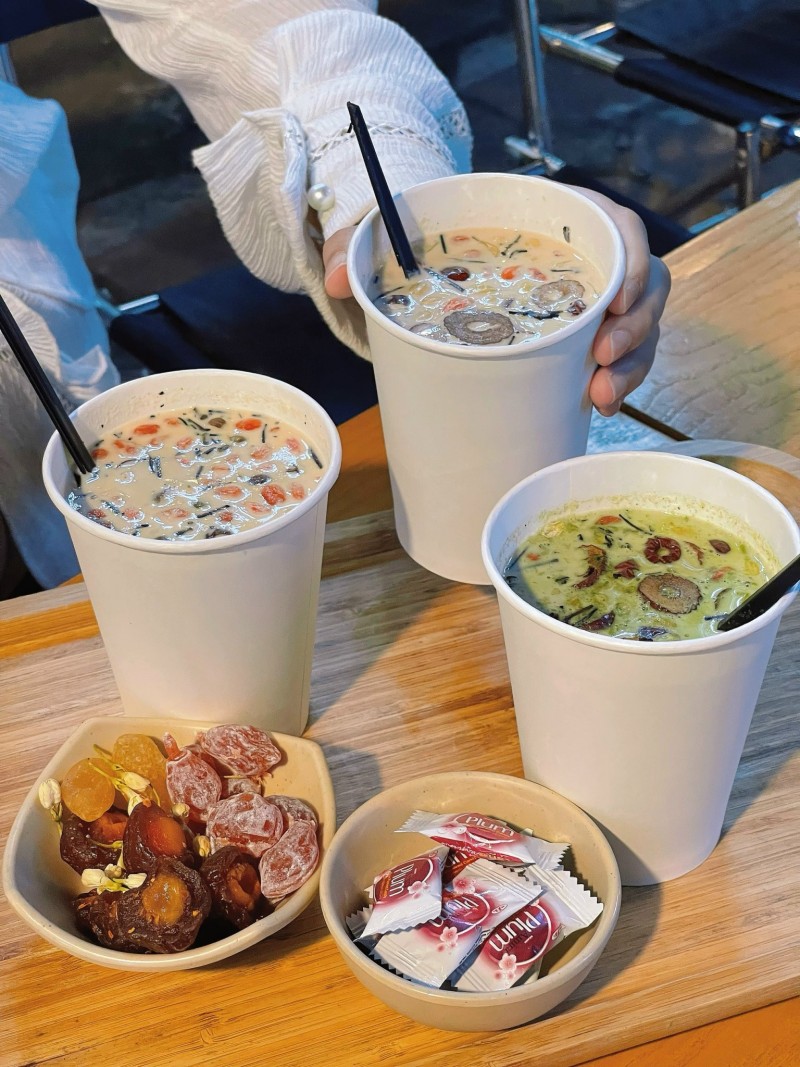 | Trà sữa đất nung ăn kèm ô mai tạo thành món ăn vặt được lòng giới trẻ vào mùa đông. |