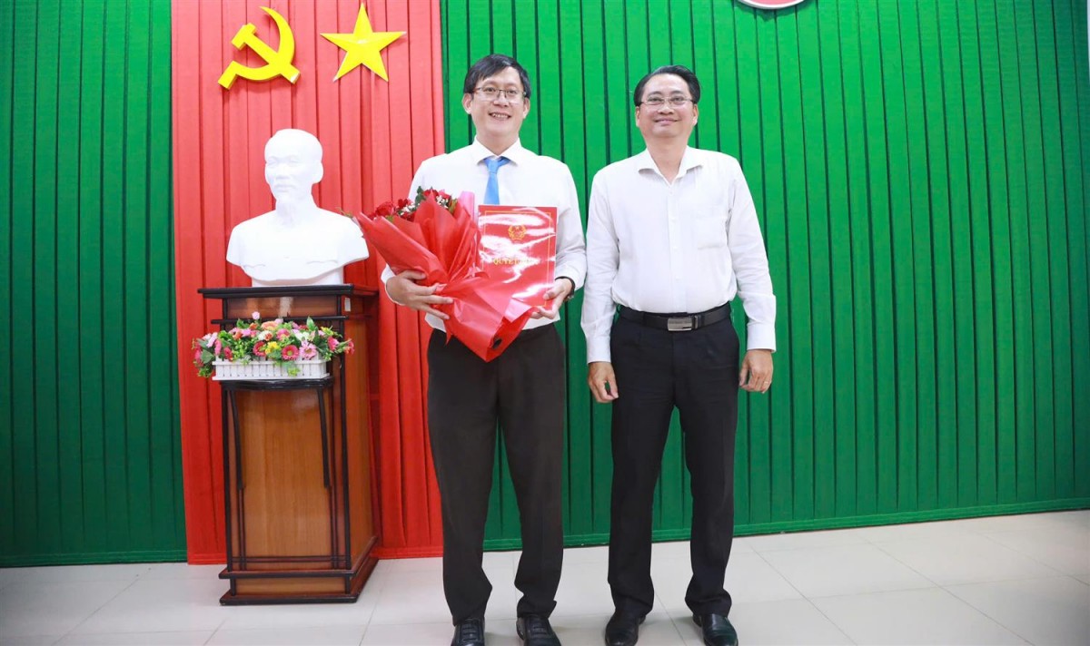 | Phó Chủ tịch UBND tỉnh Trà Vinh Nguyễn Quỳnh Thiện trao quyết định cho ông Nguyễn Tấn Đức. Ảnh: UBND Trà Vinh |