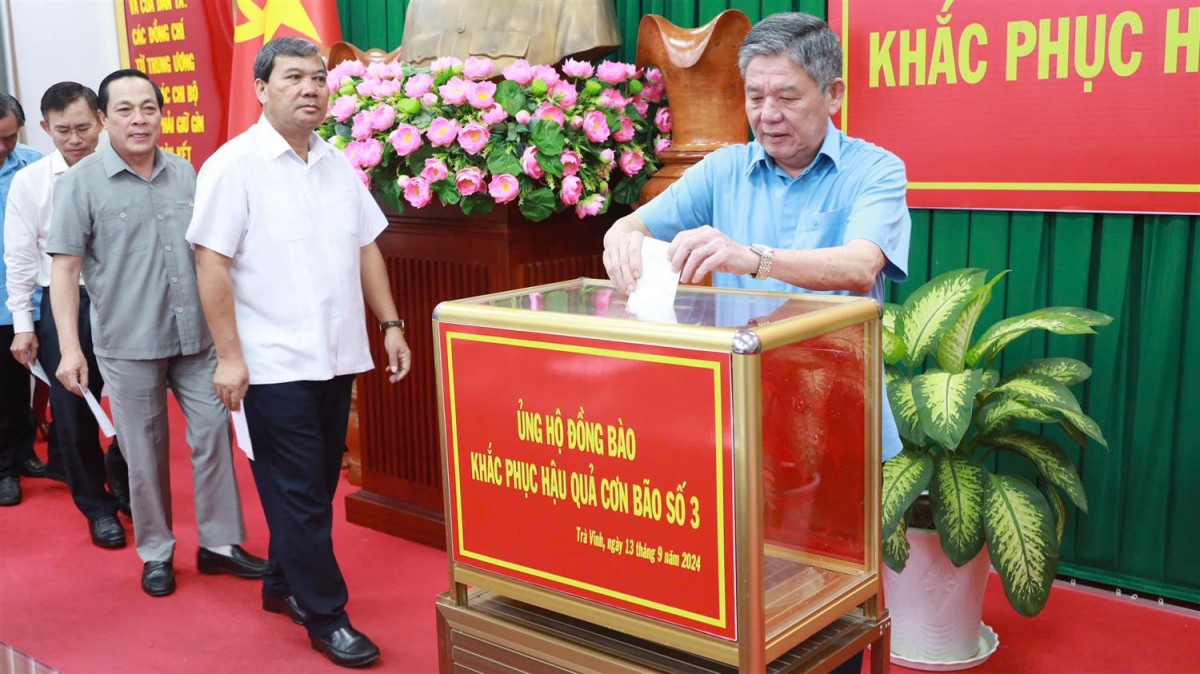 Hưởng ứng lời kêu gọi của Đoàn Chủ tịch Ủy ban Trung ương Mặt trận Tổ quốc Việt Nam và thực hiện ý kiến chỉ đạo của Thường trực Tỉnh ủy tỉnh Trà Vinh, với tinh thần “Đồng hành cùng cả nước, chia sẻ đau thương mất mát, khó khăn với người dân các tỉnh, thành phố phía Bắc bị thiệt hại do thiên tai”, các cán bộ, công chức trong Ban Thường vụ Tỉnh ủy Trà Vinh đã đóng góp 1 ngày lương để ủng hộ đồng bào khắc phục thiệt hại do cơn bão số 3 gây ra. Buổi phát động do ông Ngô Chí Cường, Bí thư Tỉnh ủy Trà Vinh chủ trì.