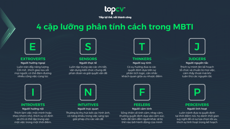 | 8 cặp tính cách theo trắc nghiệm MBTI |