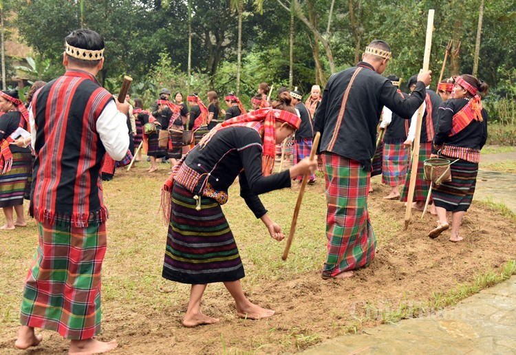 | Đồng bào thực hiện nghi thức chọc lỗ, gieo hạt |