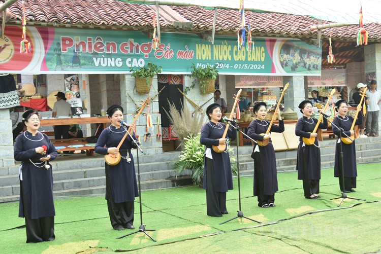 Không gian phiên chợ là sự kết hợp giữa không gian hội xuống chợ, không gian vui chơi gắn với các hoạt động dân ca, dân vũ, trò chơi dân gian, không gian ẩm thực, sản vật với sắc màu của các dân tộc Lô Lô, Mông, Tày, Nùng, Dao (Cao Bằng)...
