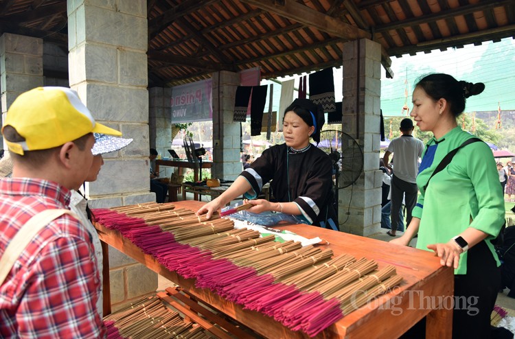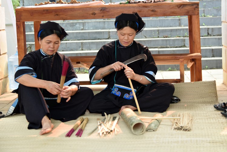 Cũng tại không gian phiên chợ tại Làng Văn hóa, du khách có có cơ hội tìm hiểu về nghề làm hương Phia Thắp - một loại hương nồng nồng, cay cay được làm từ lá của cây trầm do các nghệ nhân dân tộc Nùng thể hiện. Ngoài ra, người Dao Tiền cũng biểu diễn thêu, in hoa văn sáp ong trên vải. Đây là nghề thủ công truyền thống, chứa đựng sức sáng tạo trong nghệ thuật tạo hình của người Dao Tiền. Bên cạnh đó là màn trình diễn nghề rèn dao Phúc Sen với nét đặc trưng riêng của dân tộc Nùng, từ đó định hình nên vị trí khác biệt trên thị trường.