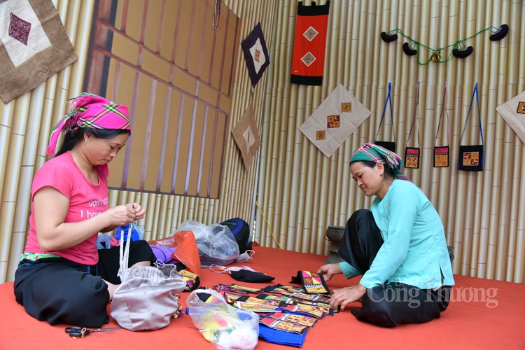 | Đồng bào trình diễn nghề thêu truyền thống |