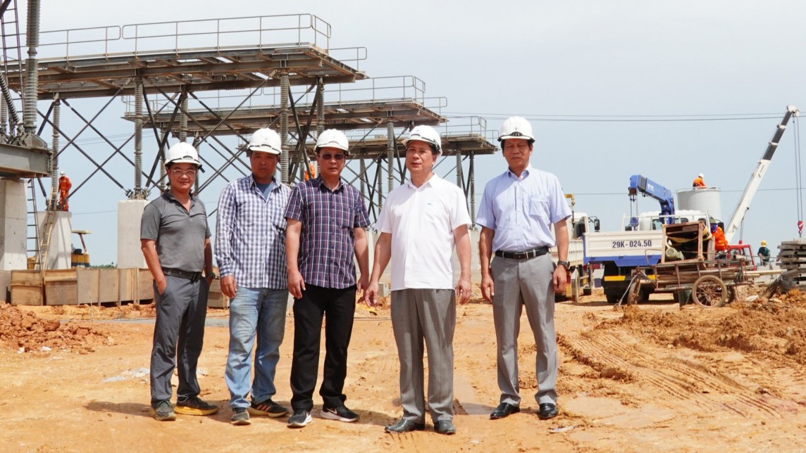 | Ông Nguyễn Tiến Dũng (thứ 2 từ phải sang) tại công trường thi công TBA 500kV Thanh Hóa |