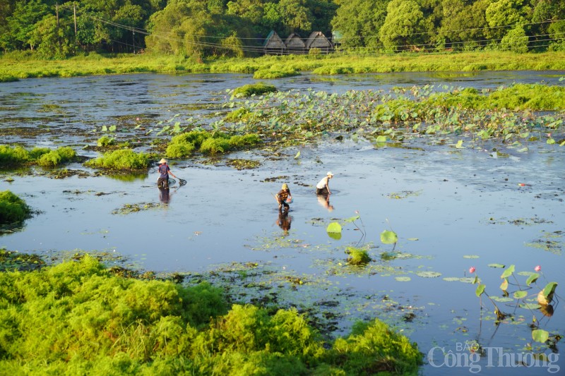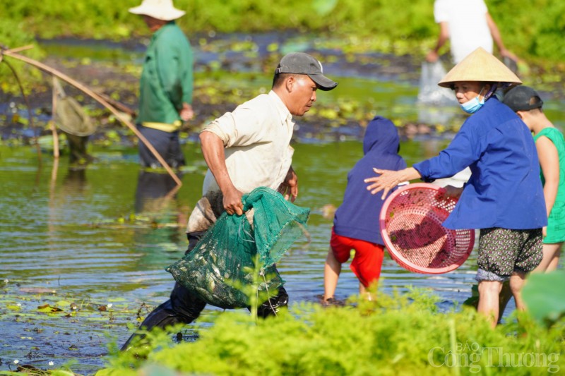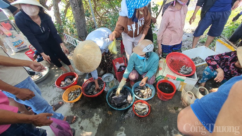 | Bà con nhân dân bày bán "chiến lợi phẩm" sau thời gian dài "vật lộn" dưới trằm. |