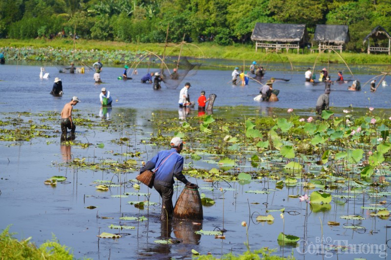 Ngày 3/9, hàng trăm người dân địa phương và du khách từ khắp nơi háo hức tập trung về Trằm Trà Lộc (xã Hải Hưng, huyện Hải Lăng, tỉnh Quảng Trị) tham gia lễ hội phá trằm bắt cá. |