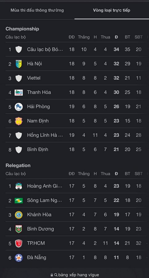 | Bảng xếp hạng V-League sau vòng 5 |