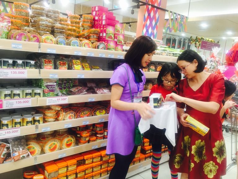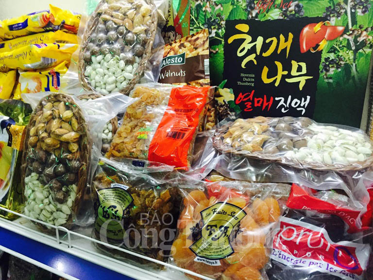 Ngoài những kênh bán hàng trên, các loại hạt khô nhập khẩu cao cấp này còn được cung cấp qua hệ thống siêu thị BigC, Aeon Mall, Metro… Tại các siêu thị này, các loại hạt nhập khẩu đều được đóng gói, ghi rõ đơn vị nhập khẩu, phân phối, vì thế tạo cảm giác yên tâm cho người tiêu dùng về xuất xứ, dù giá bán có cao hơn. Ví dụ như, hạt mắc ca do doanh nghiệp Việt Nam nhập nguyên liệu đóng gói của Vạn Đức, hay Agrico giá 200.000 đồng/500g, hạt mắc ca vị tự nhiên muối giá 1.000.000 đồng/kg. Bên cạnh các sản phẩm nhập khẩu, năm nay đã xuất hiện nhiều thương hiệu hạt mắc ca do doanh nghiệp Việt Nam sản xuất với bao bì khá bắt mắt…