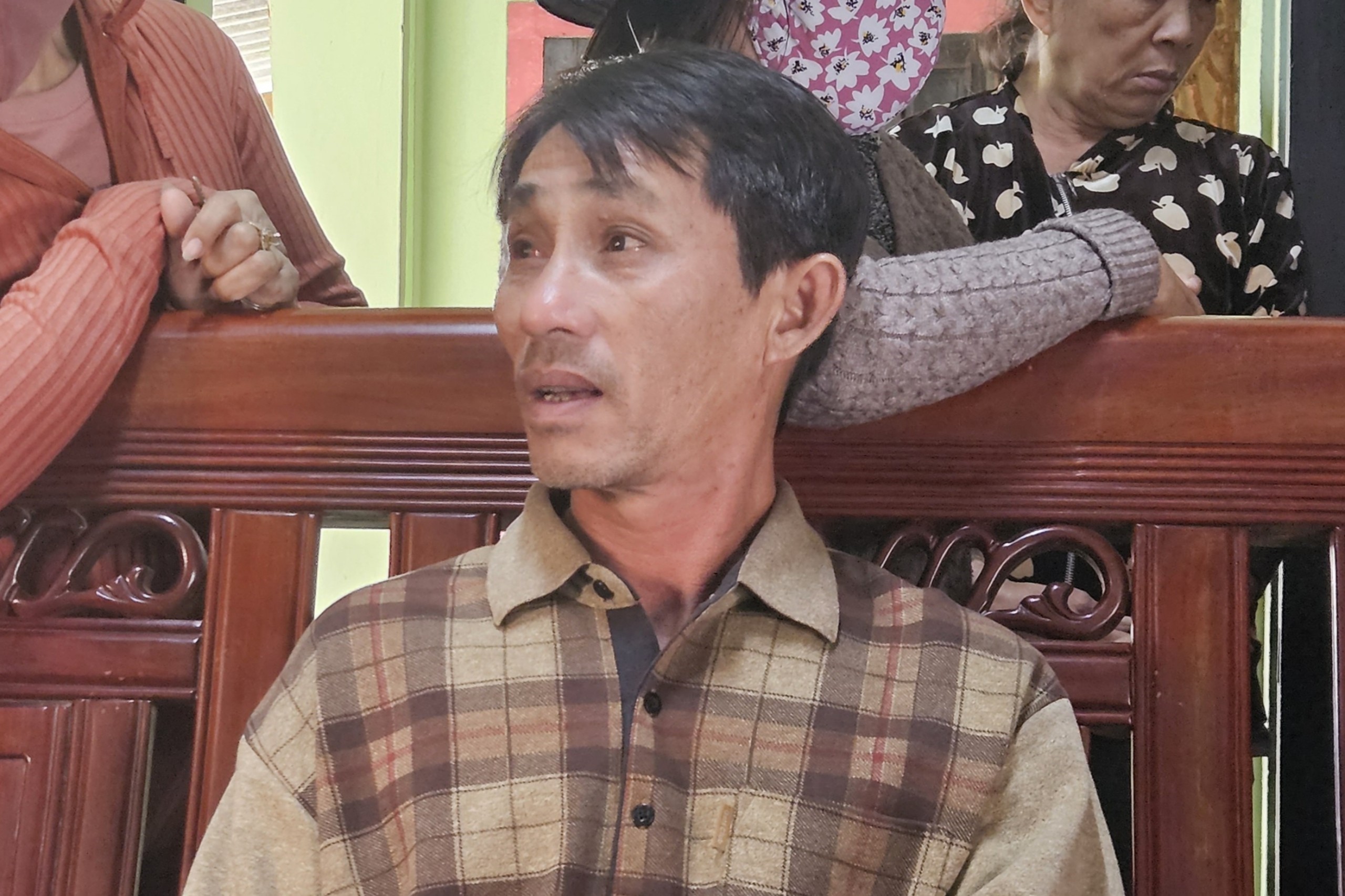 Ngồi cạnh ông Hiệp là ông Huỳnh Đức Thắng (60 tuổi) - cha của Lợi - nói cũng chỉ kịp nghe Lợi ú ớ thì đầu dây bên kia bị mất sóng.
