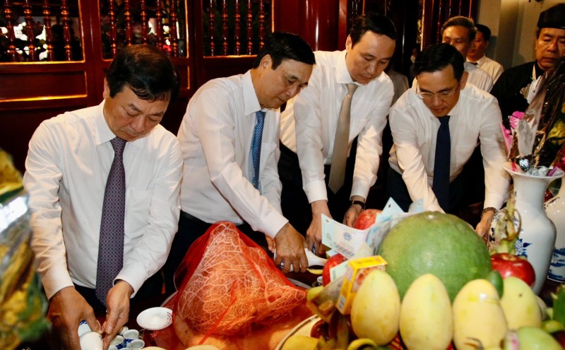 | Phó Bí thư Thường trực Tỉnh ủy Phùng Khánh Tài dâng hương tưởng niệm Tổ Mẫu Âu Cơ |