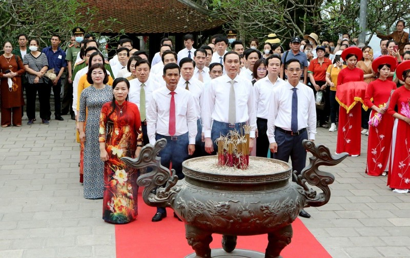 Tại Đền thờ Tổ Mẫu Âu Cơ trên đỉnh núi Vặn, Phó Bí thư Thường trực Tỉnh ủy Phùng Khánh Tài và Phó Chủ tịch UBND tỉnh Hồ Đại Dũng cùng đoàn thay mặt nhân dân cả nước thành kính dâng hương, hoa, lễ vật, bày tỏ lòng biết ơn, tưởng nhớ công đức của Tổ Mẫu Âu Cơ - người mẹ huyền thoại đã sinh ra nguồn gốc của cộng đồng người Việt. Cầu mong Tổ Mẫu phù hộ cho xã tắc thịnh vượng, quốc thái, dân an, bách gia trăm họ vạn đại trường tồn, đất nước hòa bình, nhân dân ấm no, hạnh phúc.
