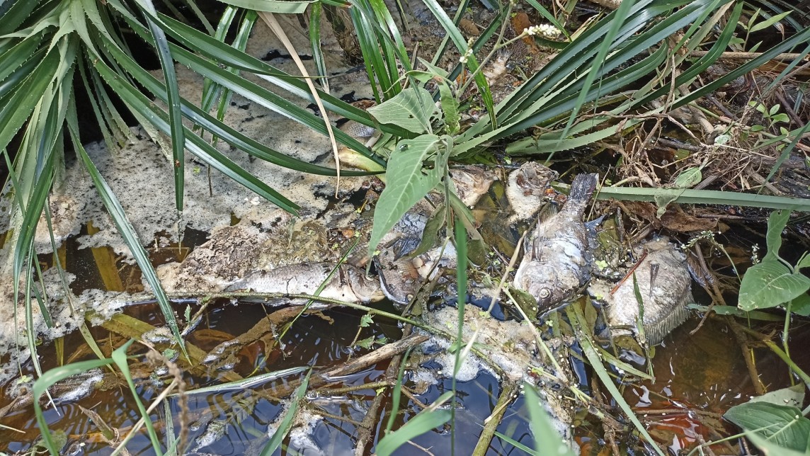 | Cá chết nổi trắng suối, người dân lo lắng phải cầu cứu cơ quan chức năng. (Ảnh: QH) |